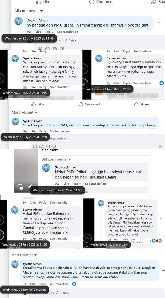 Jaringan ini bergantung kepada skrip yang telah disediakan, termasuk pujian umum seperti “bukti kerajaan Madani…” dan naratif khusus seperti “gaji minima RM1700”.
