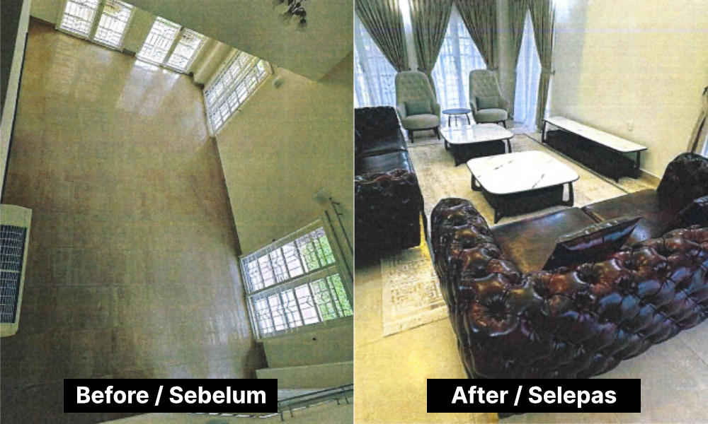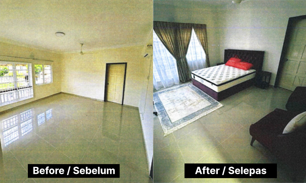 Tei juga memberikan gambar “sebelum dan selepas” pelbagai bilik di rumah didiaminya di Putrajaya, yang menunjukkan perabot, katil, lampu, dan langsir yang dinaik taraf.
