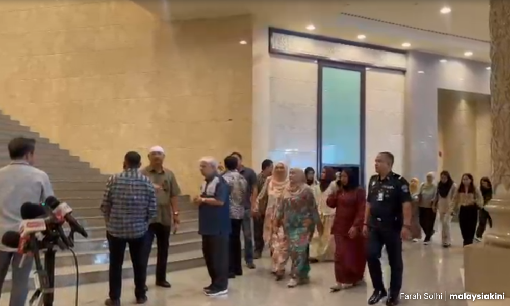 Isterinya, Bibi Sharliza Mohd Khalid, dilihat sangat emosional dan kedengaran menangis manakala ahli keluarga lain terus menenangkan dan memegangnya ketika mereka keluar.